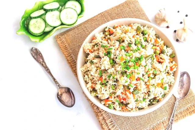 Kavrulan pirinçlerin üzerine haşlanmış bezelye ve havucu ekleyip pirinçleri kırmadan 1-2 tur nazikçe çevirin. Sıcak su ve tuzu ekleyip tencerenin kapağını kapatın.